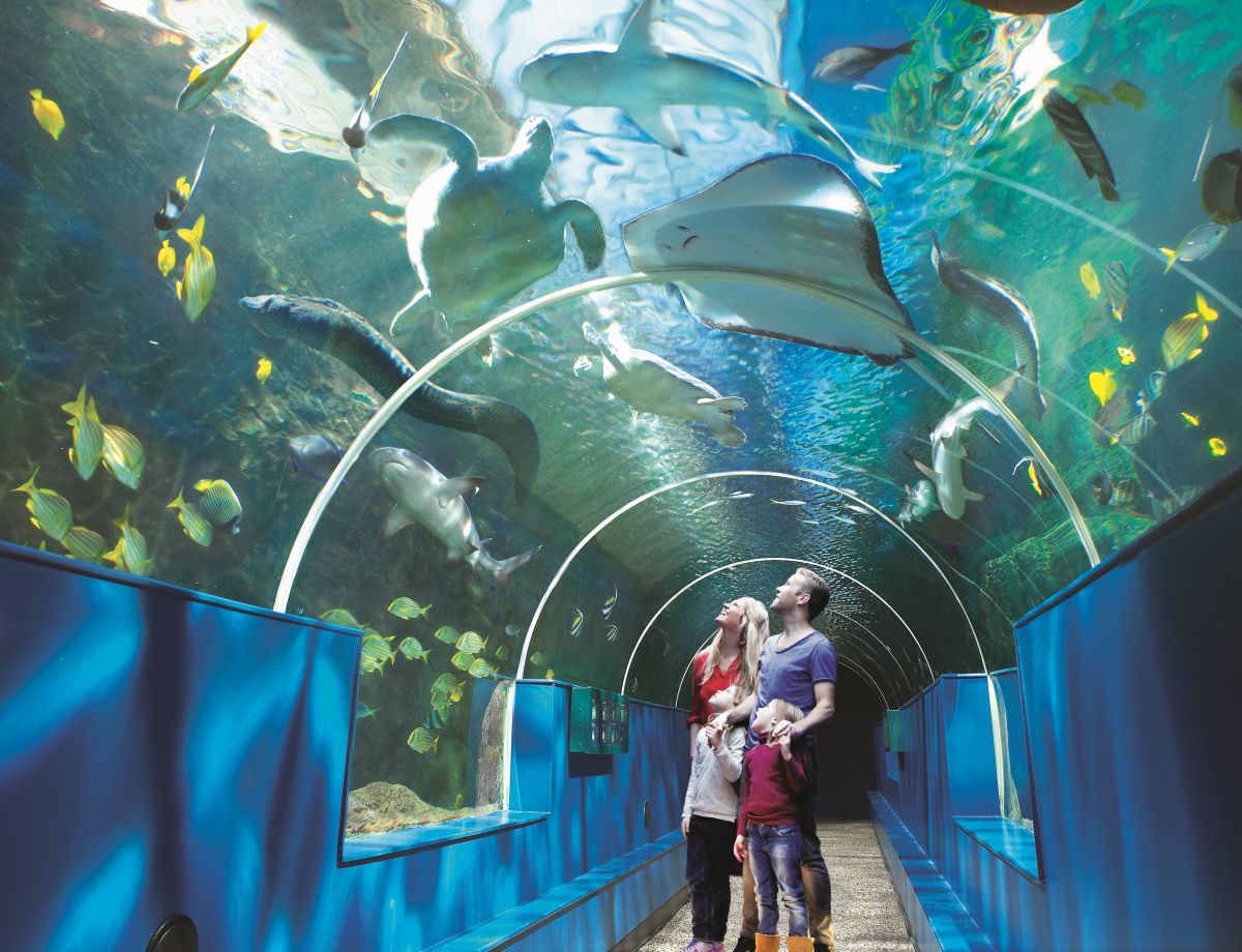 - Walk through the underwater tunnel surrounded by sharks, stingrays, and a giant sea turtles