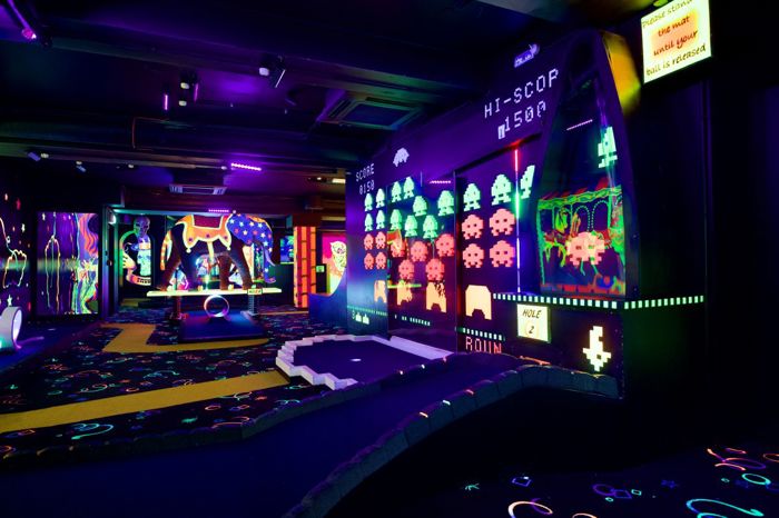 - Mini golf madness across vibrant, themed courses