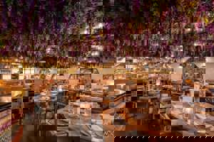 - Beautiful upscale setting underneath the wisteria!