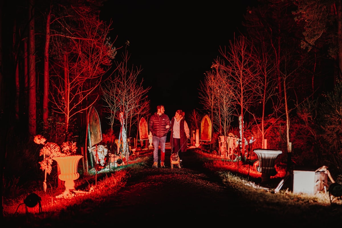 - Illuminated woodland trail of eerie light installations
